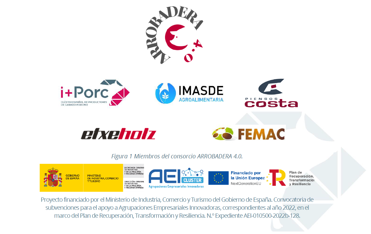Se han culminado con éxito los trabajos previstos del proyecto «Arrobadera 4.0.: Diseño de un sistema mecánico sensorizado para la separación de purines en el interior de instalaciones porcina», liderado por el Clúster Español de Productores de Ganado Porcino (i+Porc), y en el que participamos las siguientes empresas: Imasde Agroalimentaria, SL (Imasde), Piensos Costa S.A., (Costa), Clúster de la Maquinària i dels medis de producció agrícola de Catalonia (Femac) y nosotros; Etxe Holz S.L. (Etxeholz). Este proyecto fue aprobado en la convocatoria extraordinaria de ayudas para Agrupaciones Empresariales Innovadoras del año 2022 del Ministerio de Industria, Comercio y Turismo, en el marco del Plan de Recuperación, Transformación y Resiliencia (AEI2022b).