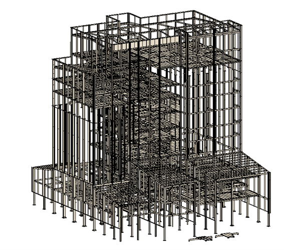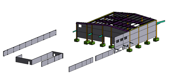 A continuación mostramos un ejemplo de una fábrica de piensos que estamos construyendo en la actualidad. En esta obra, las contratas de Estructura Metálica y Estructura de Hormigón Prefabricado, se han favorecido de esta metodología de trabajo ya que ellas trabajan con programas totalmente diferentes. Al centralizar todo gracias a BIM, la DF puede trabajar con un solo archivo y remitírselo posteriormente a las diferentes contratas evitando, de esta manera, incongruencias o fallos.