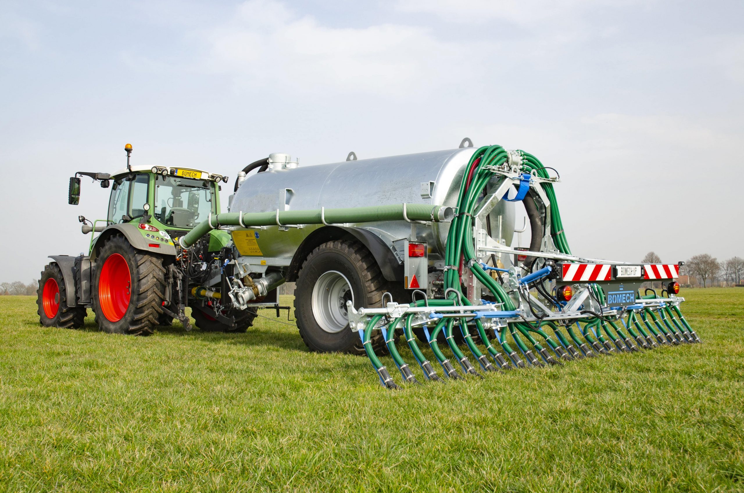 - Aplicador de tubos colgantes: Etxe Holz es distribuidor de los distribuidores de purín Bomech. Gracias a estos equipo que cuentan con tubos colgantes y zapata de arrastre, conseguimos una aplicación localizada del purín, reduciendo su exposición a la atmósfera. Unido a un laboreo tras su aplicación, este sistema previene la saturación del suelo en la aplicación del purín, reduciendo la anaerobiosis y por tanto las emisiones de óxido nitroso y metano.