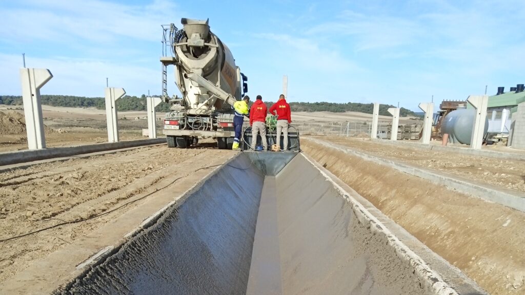 - Cobertura flotante en balsas: las balsas de purines proyectadas por Etxe Holz cuentan con un sistema de cobertura flotante mediante lámina de polietileno. Esta cobertura, al estar en contacto directo con la superficie de purín de la balsa, reduce la superficie de contacto purín-aire, reduciendo las emisiones de amoníaco en un 80%. La instalación de nuestro sistema de cobertura de balsas se realiza en un máximo de tres días con la mínima obra civil y tiene una garantía de 10 años.