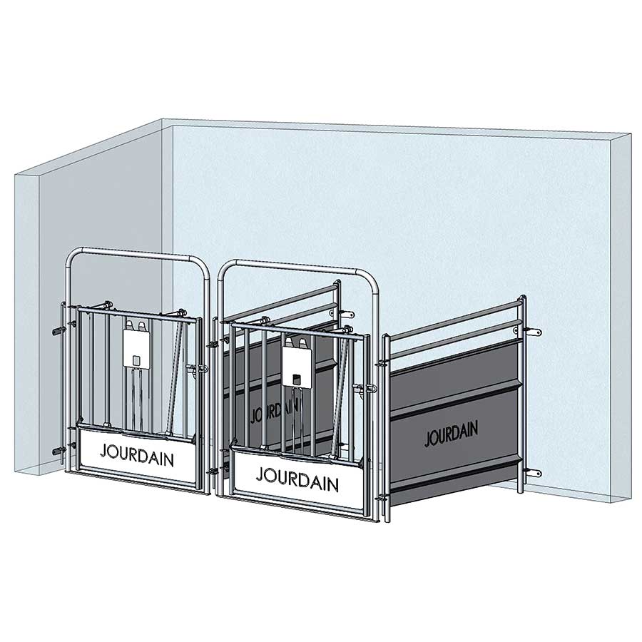 Suelo de rejilla en PEAD muy ligero, anti-deslizante y elevable para un fácil limpieza y buen confort del animal. Su altura facilita la entrada del ternero. Se fija en posición vertical para su limpieza. |