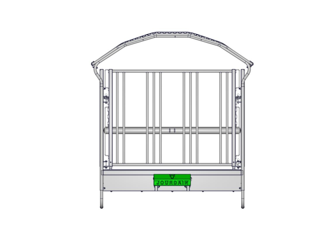 Comedero especialmente adaptados a los caballos. Muy robusto con elementos principales en tubo ∅ 60 mm. Protección de techo integral, protección 3 puntos (en material compuesto) y canalón rígido a que refuerza el techo.