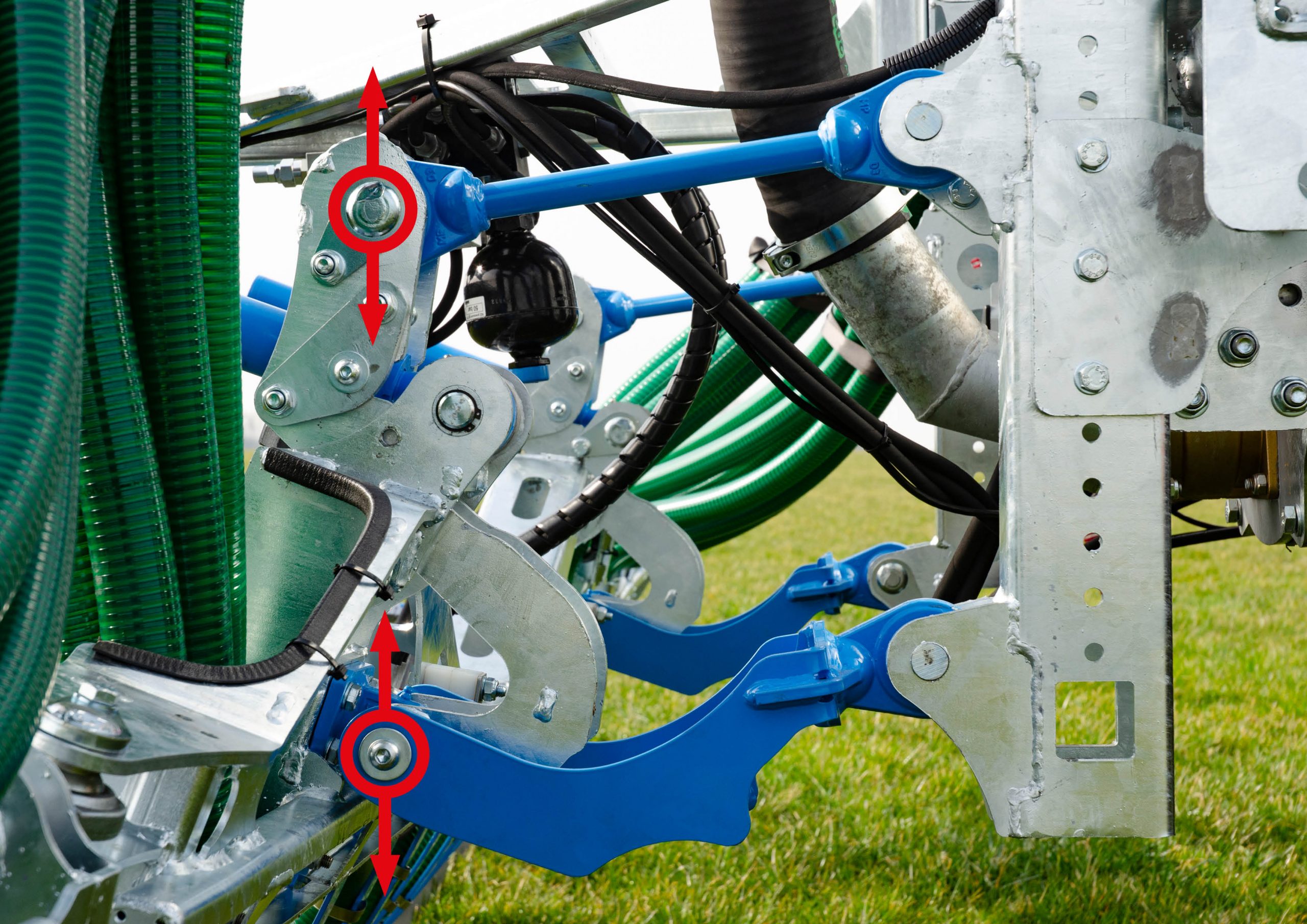 La característica estrella del UP, y única de esta serie de equipos, es el nuevo sistema patentado de compensación del desnivel mediante cinemática paralela. El sistema permite una adaptación al suelo insuperable en terrenos desiguales y pendientes, incluso en condiciones del terreno extremadamente esfavorables. Mediante el sistema de compensación, el inyector de zapata de arrastre puede adaptarse al contorno del suelo con total independencia de los movimientos del cisternal, en sentido transversal y longitudinal, garantizándose así una cobertura de estiércol óptima en todo momento.