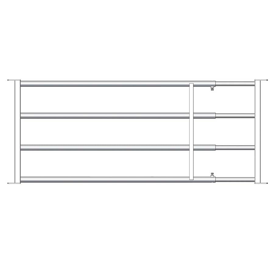 PORTILLOS 4 TUBOS: Portillos extensibles con 4 tubos horizontales de Ø42,4 mm y Ø34mm (extensible). Fijaciones idénticas a las de los paneles para terneros, por bridas sobre postes Trèfle ∅ 76 para encofrar o sobre pletina, o sobre soportes simples. Disponibles en 60/100cm, 110/150cm, 160/250 cm. |
