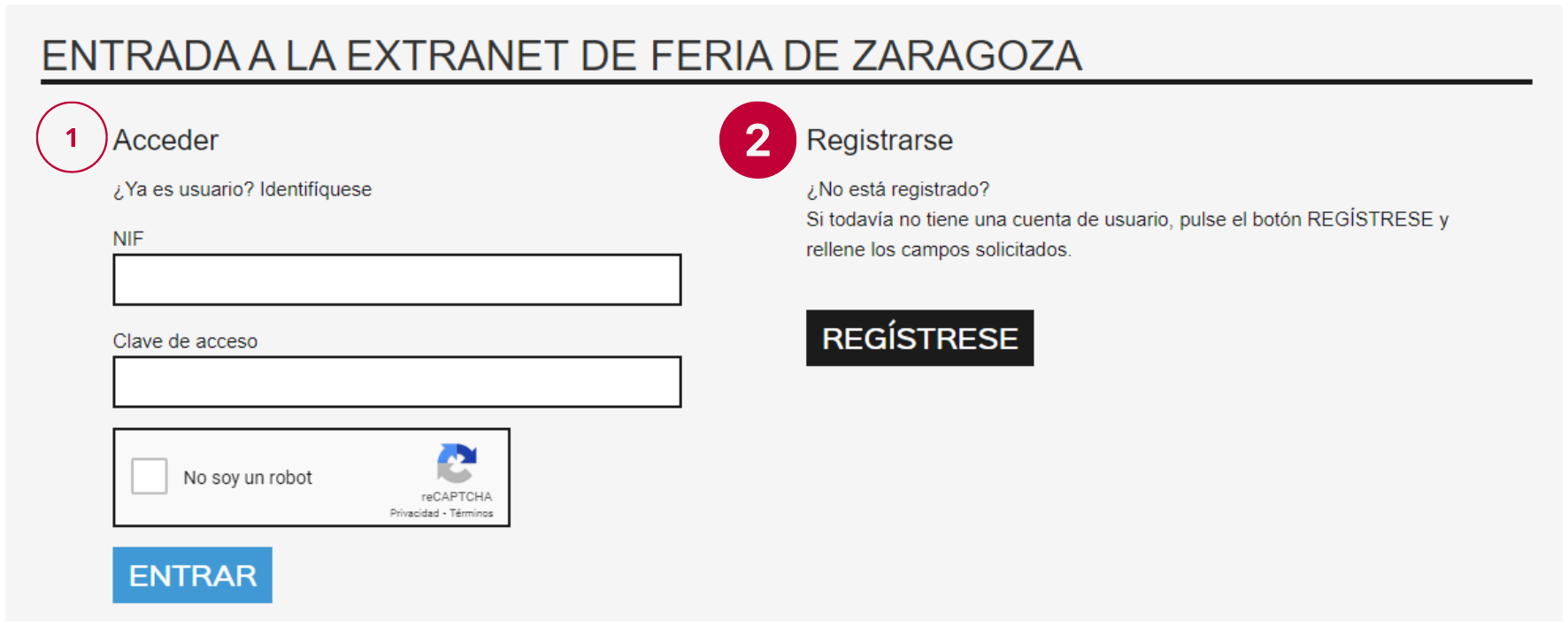 - En el caso de no estar aún registrado: tendremos que darle al botón de REGÍSTRESE.
